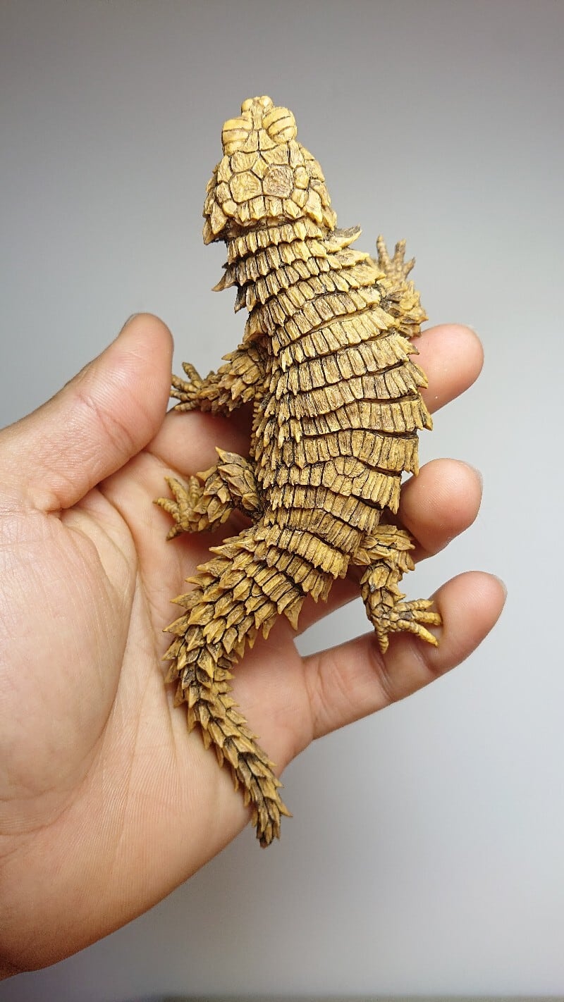 アルマジロトカゲハンドメイド等身大リアルフィギュア墨入れ完成品になります。