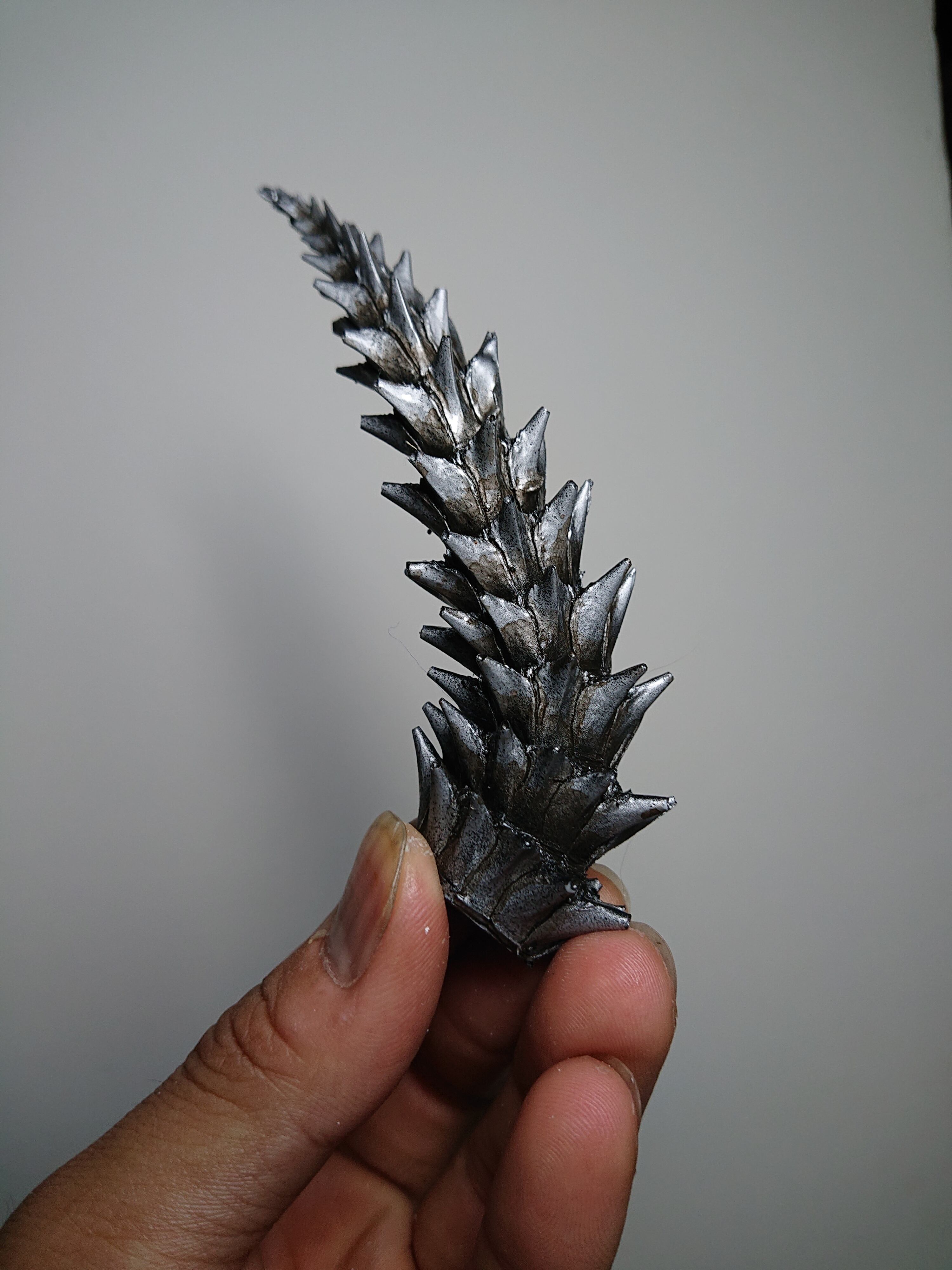 オオヨロイトカゲの尻尾レプリカシルバー仕上げです。