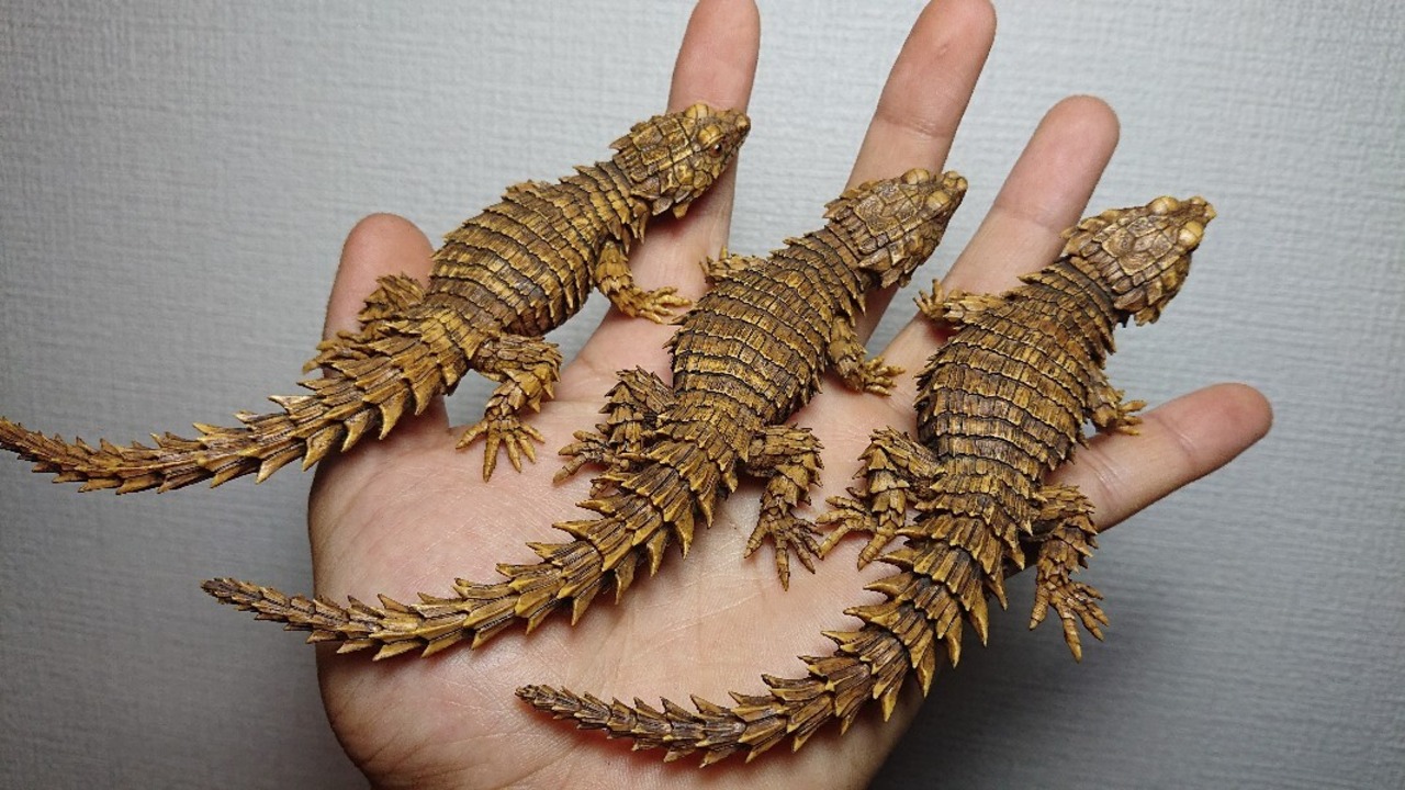 アルマジロトカゲ リアルフィギュアの墨入れ完成品(イエロー)になります!